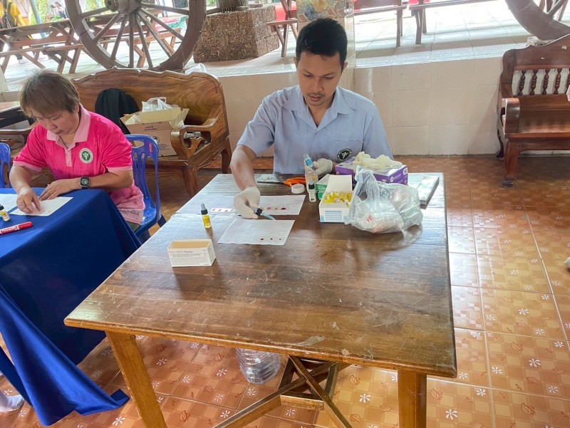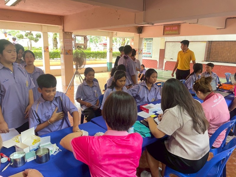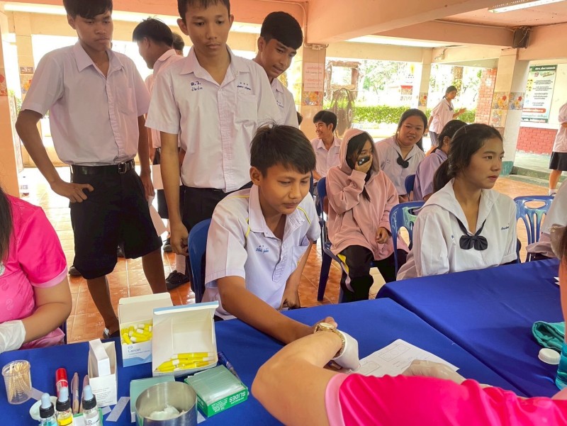 การเจาะเลือดให้กับนักเรียนเพื่อจัดเก็บกรอกข้อมูลประวัติของนักเรียน และ กรุ๊ปเลือดของนักเรียน